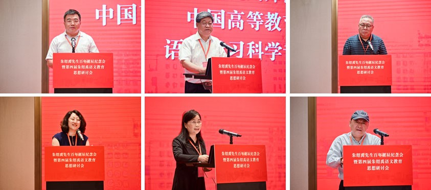 北京师范大学校长助理、中国高等教育学会语文教育专业委员会理事长郑国民教授,杭州师范大学人文学院、中国高等教育学会学习科学研究分会学术委员会主任王光龙教授,华中师范大学文学院副院长王洪涌教授,中国出版集团现代出版社胡大庆总经理,《中学语文教学》杂志社张蕾主编,海南魔幻谷旅游文化发展有限公司张文颖董事长等嘉宾在致辞中,共同表达了对朱绍禹先生的景仰之情和缅怀之意,倡导大家继承朱先生博大精深的语文教育思想,学习他为人、为学、为师的高尚品格。
