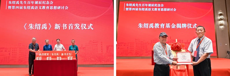 开幕式最后还举行了《朱绍禹》新书首发仪式和朱绍禹教育基金揭牌仪式。洋洋50多万字的人物传记《朱绍禹》是一座纪念朱绍禹先生百年诞辰的丰碑,是后辈体悟朱绍禹语文教育思想和学习朱先生师德品行的重要载体。设立朱绍禹教育基金,意在奖掖后学、培养卓越,更好地弘扬朱先生的语文教育思想,为我国语文教育学科建设和教师教育事业发展持续助力。