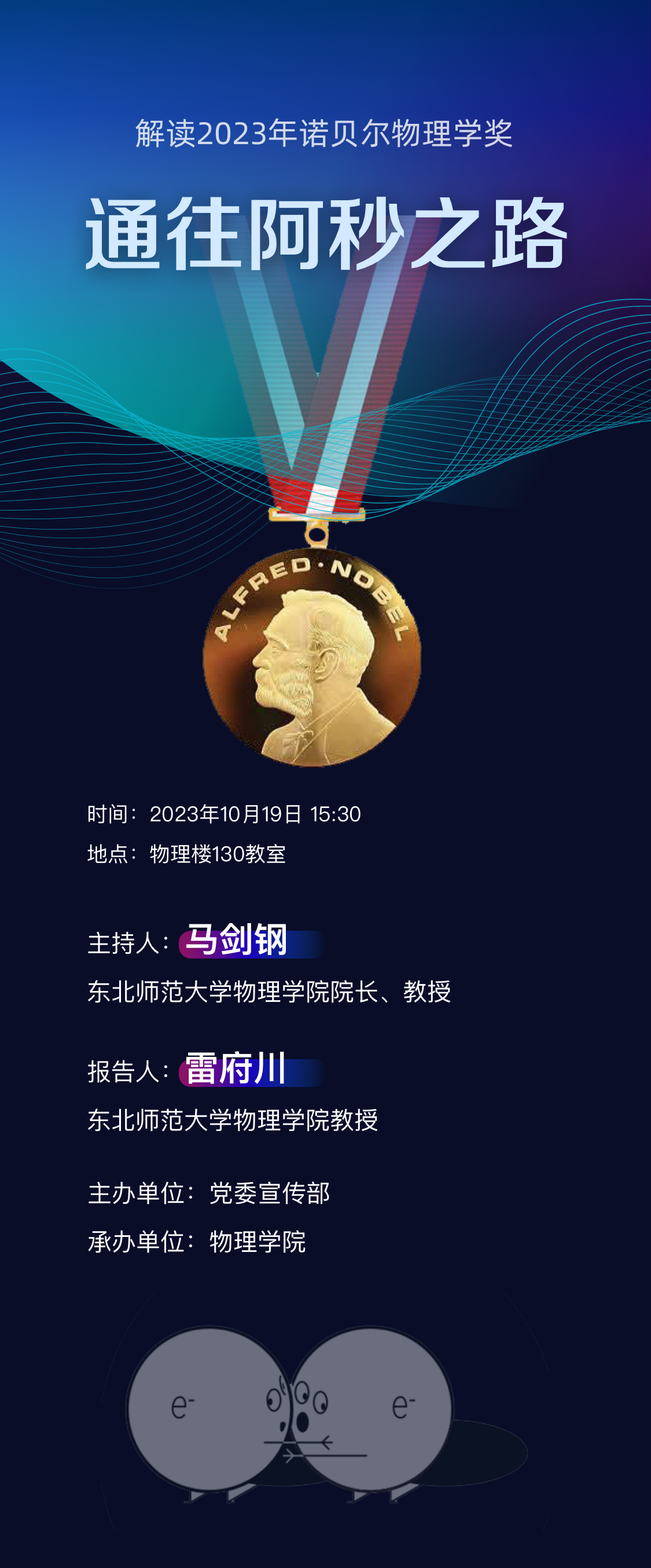 为践行“创造的教育”理念,浓厚校园学术氛围,学校将延续2022年解读科学类诺贝尔奖活动,分三场举办“解读2023科学类诺贝尔奖”活动。活动由党委宣传部主办,物理学院、化学学院、生命科学学院承办。具体如下: