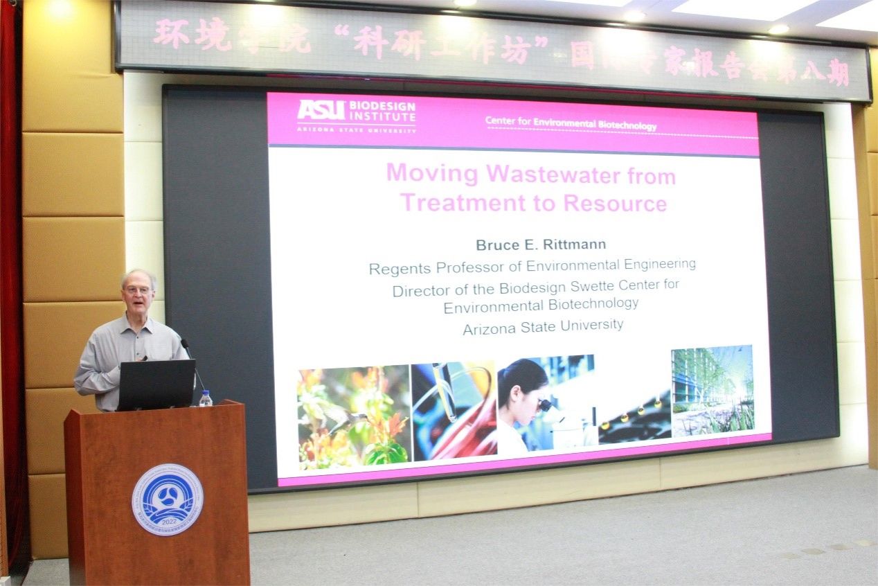 本次邀请的Bruce E.Rittmann教授是国际著名的环境生物技术专家,美国国家工程院院士、美国国家发明家科学院院士、亚利桑那州立大学校董(Regents)教授、生物设计研究所Swette环境生物技术中心主任、亚利桑那州立大学全球可持续发展学院可持续发展杰出科学家。Rittmann教授结合微生物学、生物化学、地球化学和微生物生态工程学的基本原理以及计算方法开展系列科学研究,在Nature、Nature Reviews Microbiology、Water Research等行业顶级期刊发表论文700余篇。相关研究成果于2018年获得被誉为水环境领域“诺贝尔奖”的“斯德哥尔摩水奖”。
