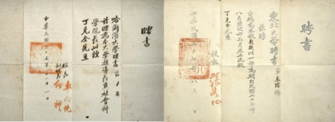 哈尔滨大学、东北大学聘书(解放前)