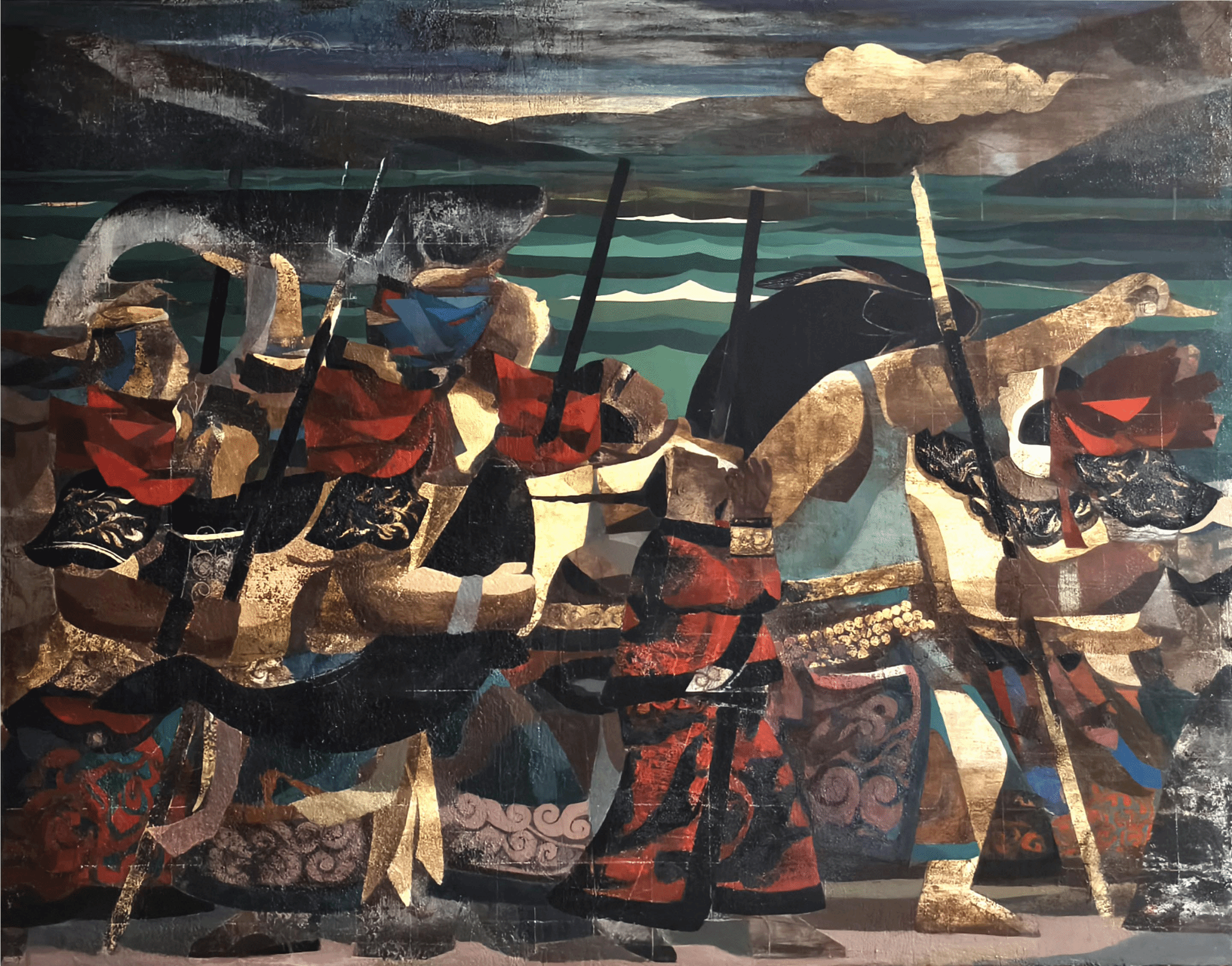 谭玉涛(教师) 油画作品《赫哲渔歌之莫日根归来》