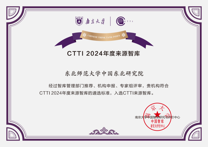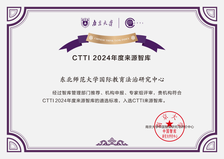 近日,南京大学中国智库研究与评价中心发布了CTTI(中国智库索引)增补来源智库名单和最佳案例与优秀成果。国际教育法治研究中心、中国东北研究院新晋入选CTTI来源智库,我校CTTI来源智库增至4家。中国农村教育研究院、东亚研究院(原东亚文明研究中心)、国际教育法治研究中心、中国东北研究院提交的多项案例及成果获奖,入选智库建设示范案例1项(全国45项),优秀案例3项(全国94项);获得智库研究优秀成果特等奖2项(全国75项),二等奖4项(全国253项)。